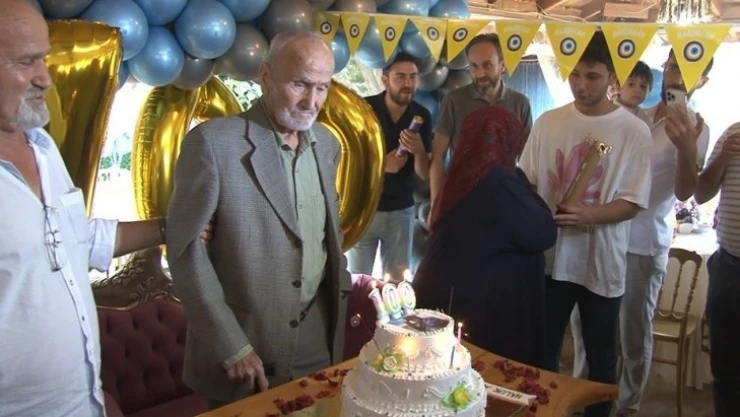 100 yıl boyunca hiç kutlamadığı doğum gününü torunlarının sürprizi ile kutladı