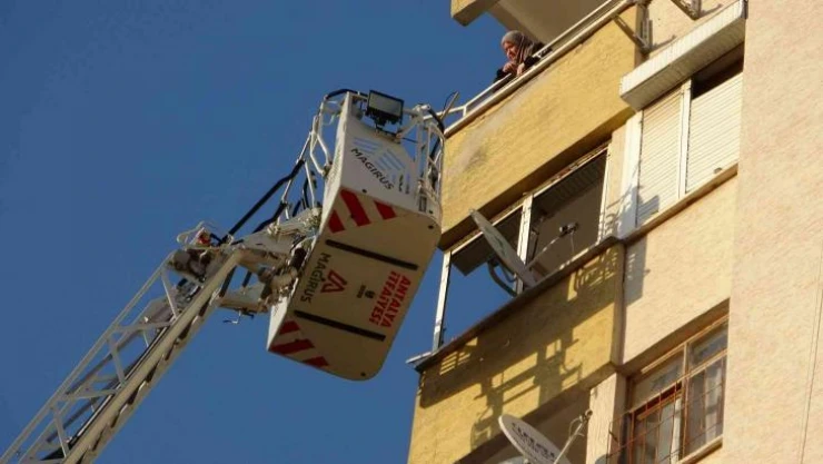 Antalya'da 12'nci katın balkonundan 11'inci katın balkonuna düşen kedi itfaiye ekipleri tarafından 42 metre uzunluğundaki merdiven ile kurtarıldı. Çevrede bulunan vatandaşlar ise o anları film izler gibi izledi.