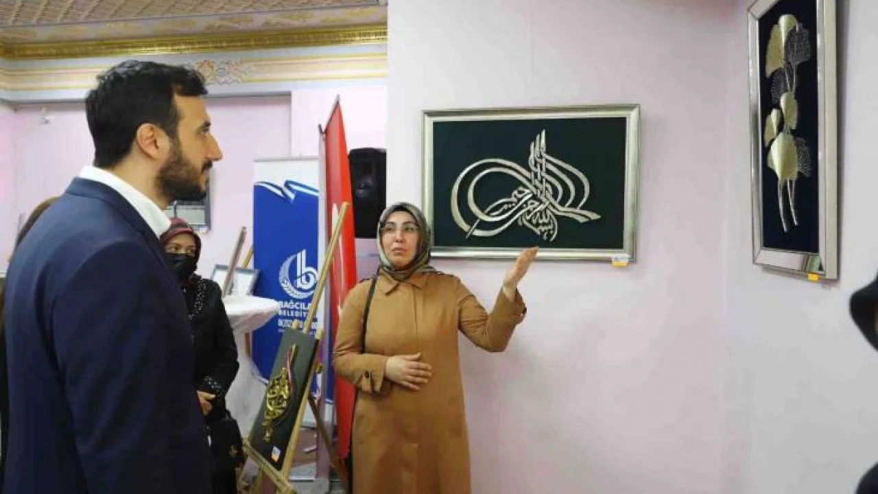 Bağcılar Belediyesi Kadın ve Aile Kültür Sanat Merkezi kursiyerleri, çivi ve tellerin dansıyla hayat verdiği filografi sergisi sanatseverlerle buluştu. Hepsi birbirinden değerli eserlerin arasında Ebru Işık'ın 10 kilo ağırlığındaki 50 bin adet çiviyle yaptığı Esma-ül Hüsna tablosu ilgi odağı oldu.