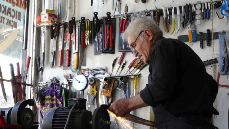 70 yaşındaki bıçak bileme ustasının bayram mesaisi