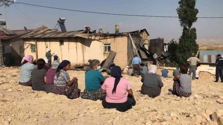 Elazığ'da bir köyde tandırdan sıçrayan kıvılcım, evin çatısını kül etti. Vatandaşlar, itfaiye ekiplerinin çalışmasını güneşin altında oturup film izler gibi izledi.