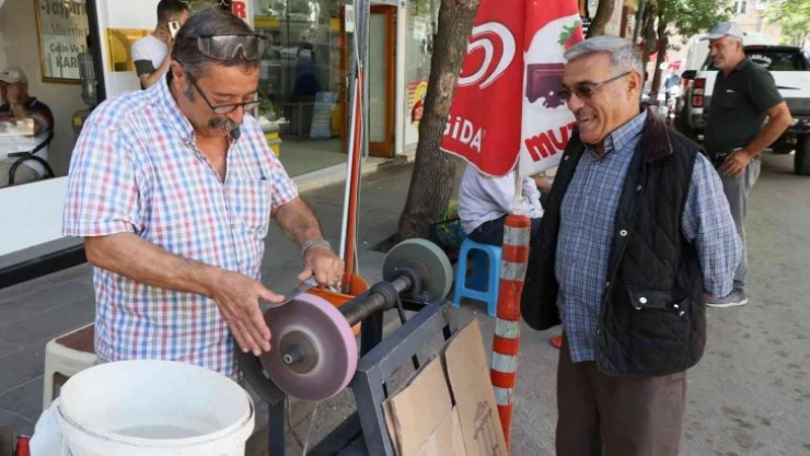 Aksaray’da Kurban Bayramı hazırlıklarında önemli bir yere sahip olan bıçakçılar, kurban kesimi, deri yüzümü ve et doğramak için vatandaşların talebiyle bıçakları bileme makinesiyle keskinleştiriliyor. Kurban Bayramı için üretilen yeni bıçakların tezgahlardaki yerini aldığı bıçakçılarda satışlar devam ederken, vatandaşların getirdiği bıçaklar da bileme işlemi görüyor. Bıçak bileme işleminde bıçağın yanmaması ve iyi eğelenmesi gerekirken bıçakçı esnafı müşterilerinin önünde sanatlarını konuşturuyor. Vatandaşlar da hayvanların kesim esnasında eziyet çekmemesi ve kesim sonrası etlerin rahat bir şekilde doğranması için bıçakları işin ehline bırakıyor. Kentte, bıçak 7, nacak ve balta ise 15 liradan bileniyor.