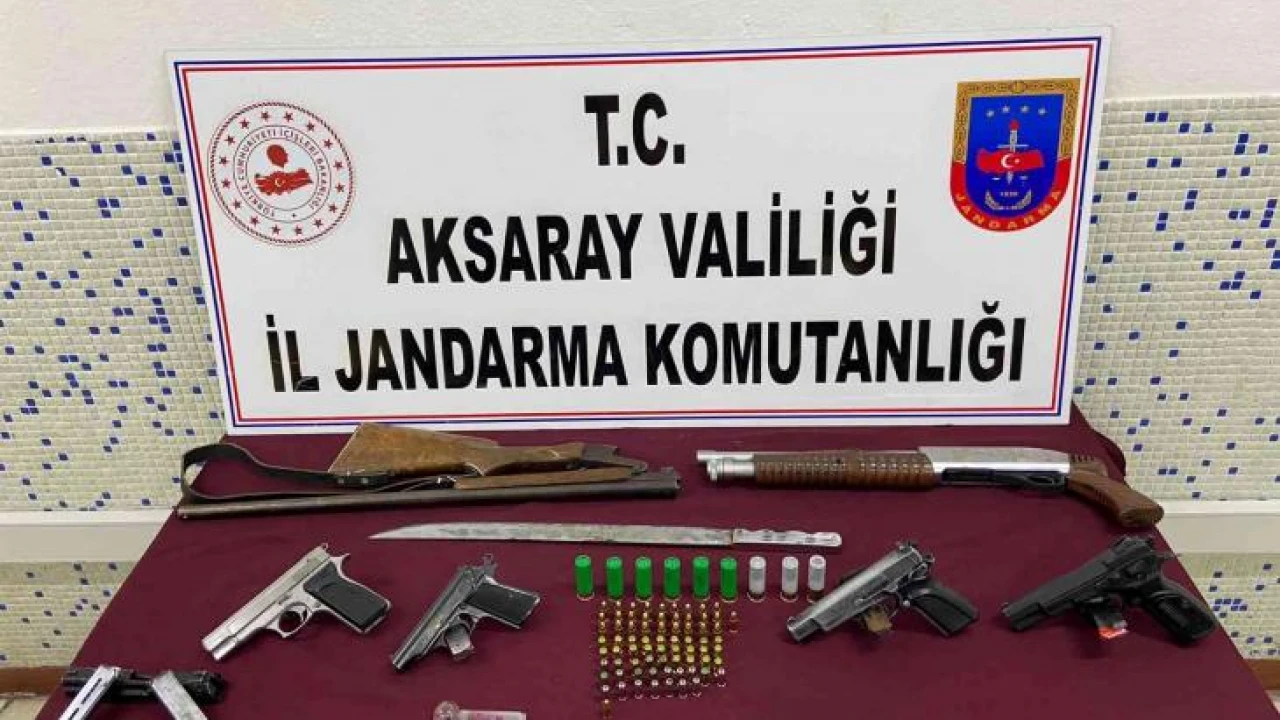 Edinilen bilgiye göre, asayiş ve kamu düzeninin sağlanmasına yönelik çalışmalar yapan İl Jandarma Komutanlığı ekipleri Aksaray’ın Güzelyurt İlçesine bağlı Selime beldesinde bulunan alkollü restorana baskın yaptı. Gerçekleştirilen baskında restoran ve restoranda bulunan tüm şahıslar adeta didik didik aranırken çok sayıda suç unsuru ele geçirildi. K.A. (34) isimli şahsa ait restoranda 1 adet av tüfeği, 1 adet pompalı av tüfeği, 1 adet kuru sıkı tabanca, 1 adet tabanca, 9 adet av tüfeği fişeği, 16 adet tabanca fişeği, 290 adet saç tokası, 3 adet tabanca şarjörü, 22 adet kuru sıkı tabanca fişeği, 1 adet kılıç ve 1 adet tabanca kapak takımı ele geçirildi. Restoranda müşteri olarak bulunan E.B. (28) isimli şahsın üzerinde yapılan aramada ise 1 adet uyuşturucu içme aparatı, E.Y. (43) isimli şahsın aracında yapılan aramada 1 adet tabanca ve A.A. (42) isimli şahsa ait araçta yapılan aramada ise 1 adet kuru sıkı tabanca ele geçirildi. Ele geçirilen malzemeler muhafaza altına alınarak gerekli adli işlemlere başlatıldı.
