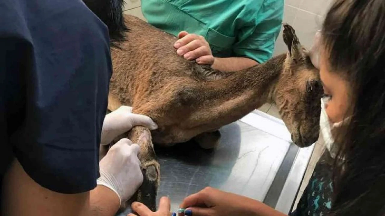 Yaralanan yaban keçisi Doğa Koruma ve Milli Parklar ekipleri tarafından alınarak anlaşmalı hayvan hastanesine getirildi. Hayvan hastanesinde yapılan ilk tetkikte, dişi yaban keçisinin tüm vücudunda yanıkların olduğu tespit edildi. Keçinin yüzünün yandığı, her iki kulağının ve bir gözünü kaybedilebileceği raporlanırken, sağ ön ayak tırnağının düşebileceği bildirildi.