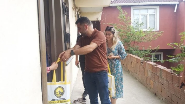 Dilovası Ağrılılar Derneği, ilçe genelinde örnek bir projeye imza attı. Durumu olmayan ve Kurban Bayramı'nda yeni kıyafetler giyemeyecek olan çocuklar için kolları sıvayan dernek yönetimi, hayırsever iş adamlarının da desteğiyle harekete geçti. Çorap, ayakkabı, tişört, pantolon, toka, terlik, şapka, elbise, eşofman, pijama takımı gibi çeşit çeşit giysi alan yönetim, bunları tek tek poşetlere yerleştirdi. Daha sonra kıyafetler, yine dernek yönetimi ve üyeleri tarafından ev ev gezilerek daha önceden tespit edilen 2 bin çocuğa ulaştırıldı.
