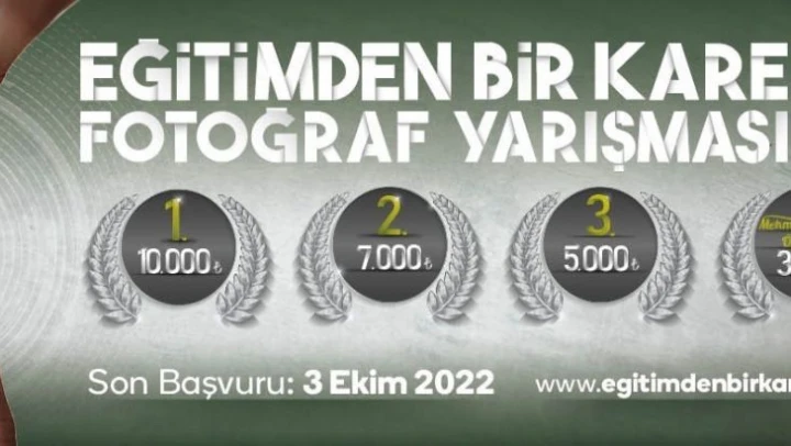 4 yıldır eğitimin önemine dikkat çekmek, eğitim çalışanlarının fedakarlıklarını gözler önüne sermek, eğitimcilerin çarpıcı hikayelerini fotoğraf sanatı aracılığıyla kamuoyuna mal etmek amacıyla 'Eğitimden Bir Kare Fotoğraf' adlı fotoğraf yarışması düzenleniyor. 5'incisi düzenlenen yarışmanın seçici kurulunda fotoğraf sanatçıları Tekin Ertuğ, İsmail Küçük, Mustafa Binol, Hakan Acar ve Anadolu Ajansı Fotoğraf Editörü Fırat Yurdakul'un yer alacağı yarışmada birinci olacak eser sahibine 10 bin lira, ikinciye 7 bin lira, üçüncüye 5 bin lira ve Mehmet Akif İnan Özel Ödülü için 3 bin lira ödül verilecek. Son katılım tarihi 3 Ekim olan yarışmada dereceye giren eser sahipleri, ödüllerini tarihi daha sonra açıklanacak törenle alacak.