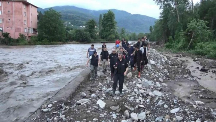 AFAD Başkanı Vali Yunus Sezer, Kastamonu'da selin etkili olduğu bölgelerde incelemelerde bulundu.