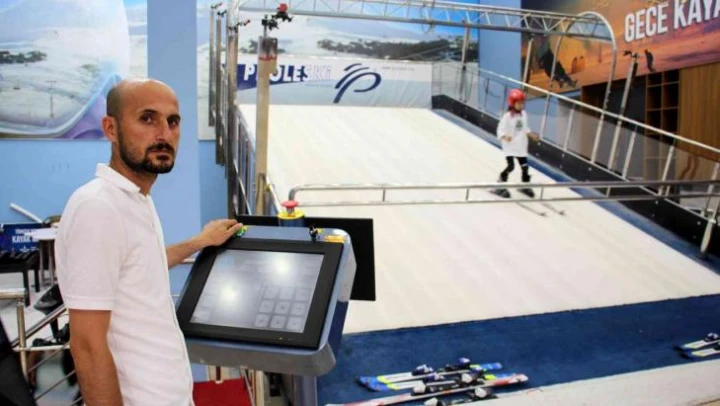 Türkiye'de tek olan Kayak Eğitim Merkezi (Simülasyon) yaz ortasında kayak severlere kaymanın keyfini yaşatıyor.