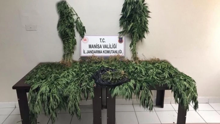 Manisa'nın Alaşehir ilçesinde ormanlık alanda 5 farklı noktada toplam 521 kök kenevir bitkisi ele geçirildi.