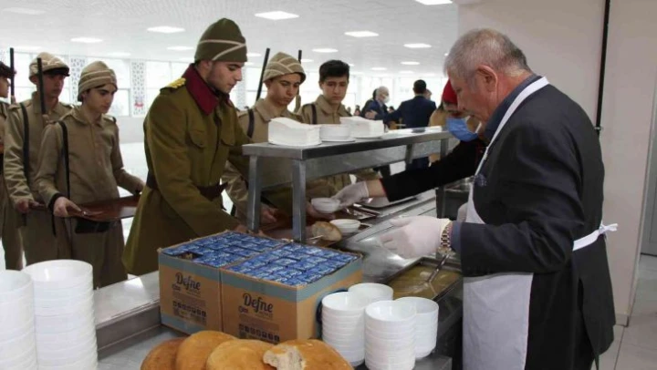 Belediye Başkanı Sarı'nın misafiri olarak o dönemin asker üniformasıyla yemeğe gelen lise öğrencilerinden 16 yaşındaki Enes Malik Kaya ise, “Daha önce Çanakkale menüsünden yememiştim. Ruhları şad olsun” ifadelerini kullandı.