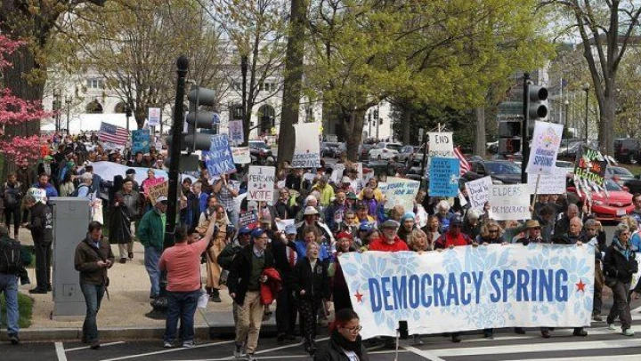 ABD Kongre binası önünde devam eden barışçıl 'Demokrasi Baharı' protestolarının üçüncü gününde yaklaşık 100 kişi gözaltına alınırken protestoların yapıldığı yerde Amerikan medyasından hiçbir televizyon ve gazetenin olmaması dikkat çekti.