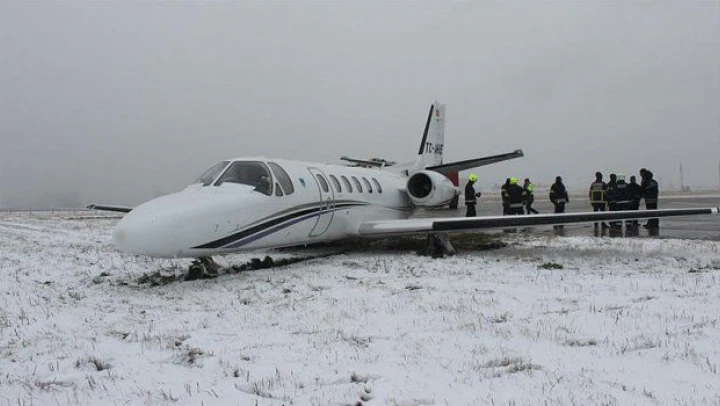 Milas-İstanbul seferini tamamlayıp havalimanına inen, içinde iş adamı Adnan Polat ile mürettebatın bulunduğu özel bir şirkete ait jet, pisti terk ettiği sırada kayarak karlı kaplı toprak alana girdi