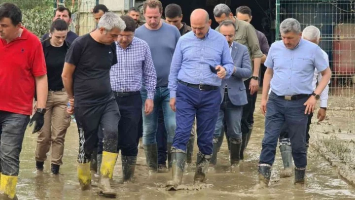 Bakan Soylu, Bartın'da selin ardından temizlik çalışmalarını inceledi