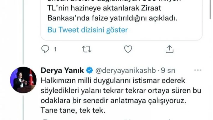 Aile ve Sosyal Hizmetler Bakanı Derya Yanık, sosyal medya üzerinden yaptığı paylaşımında yalan haberlerin pekiştirildiğini belirttiği açıklamasında, '15 Temmuz'un yaklaştığı şu günlerde, şehit yakınları ve gazilerimiz için vatandaşlarımızın yaptığı bağışlarla ilgili olarak yine bazı çirkin hesaplarla yalan bir algının pekiştirilmesine çalışılıyor. Halkımızın milli duygularını istismar ederek söyledikleri yalanı tekrar tekrar ortaya süren bu odaklara bir senedir anlatmaya çalışıyoruz. Tane tane, tek tek. Muhtemelen anlıyorlar ama bu, ürettikleri yalanı yeniden yaymalarına engel olmuyor. Bu vesileyle bir daha anlatalım. Bazı sosyal medya proflarımızın gerçekleri çarpıtma alışkanlığının önüne geçemesek de hakikate borcumuzu ödemiş oluruz' ifadelerine yer verdi.