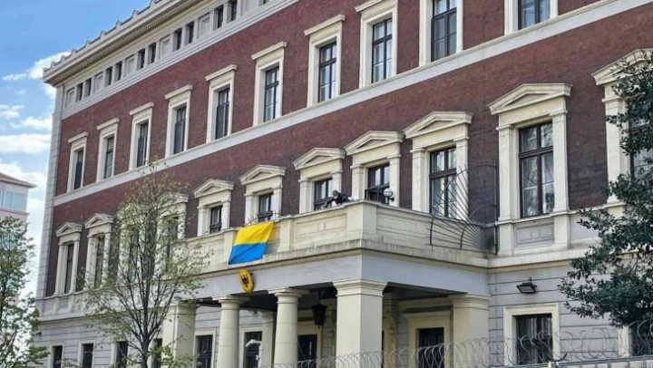 Beyoğlu'nda bulunan Almanya Başkonsolosluğu binasına Ukrayna bayrağı asıldı