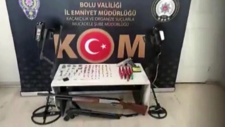 Bolu'da bir eve düzenlenen tarihi eser operasyonunda farklı dönemlere ait 102 tarihi eser, dedektör ve silahla yakalanan 2 kişi gözaltına alındı.