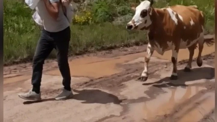 Tokat'ın Reşadiye ilçesinde Bereketli Ortaokulunda matematik öğretmenliği yapan Sadık İskender, tatil dönemini köyüne gitti. Almus ilçesi Cihet Gürgenlik Yaylası'nda hayvancılık yapan ailesine yardımcı olan İskender, hamile olan ineğini ahıra dönmemesi üzerine aramaya başladı. İneğini doğum yapmış olarak bulan İskender, buzağı yürüyemediği için sırtında taşımaya karar verdi. Çuvalla buzağıyı sırtına alarak taşıyan öğretmenin o anları cep telefonu kameralarına yansıdı. Yavrusunun yanından ayrılmayarak peşinden giden inek görenleri duygulandırdı. İskender, öğle saatlerinde ahıra dönmeyen ineğin doğum yaptığını tahmin ederek aramaya başladığını belirterek, 'Yayla komşularımızın yardımı ile ineği ve buzağısını buldum. İnek doğum yapmış ve buzağısını kurutmuştu. Buzağı çelimsiz olduğu için ayağa kalkamıyordu. Yanımda getirdiğim çuval içerisine buzağıyı sırtıma alarak eve kadar taşıdım. Annesi de bu yolculuk boyunca bize eşlik etti' dedi.