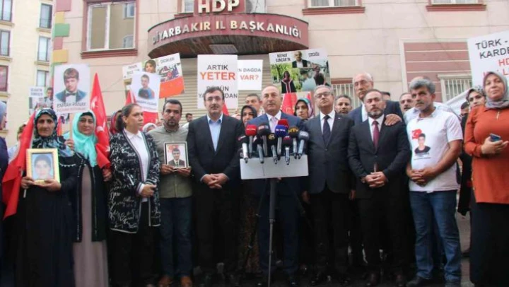 Hacire Akar'ın feryadı ile başlayan mücadelede bin 15'inci günün içinde olduğunu hatırlatan Bakan Çavuşoğlu, “Biz de buraya gelerek destek olmak istedik. Burada başlayan mücadele farklı illerimizde yankı uyandırdı. Şırnak, İzmir, Hakkari, Van, Muş gibi farklı şehirlerimizde aileler mücadele başlattı. Bir de Almanya Berlin'de annemiz şu anda rahatsız. Maide annemize geçmiş olsun diliyoruz. Maide annemizin Berlin'de kaçırılan çocuğunun mücadelesini buradan selamlıyoruz. Terör örgütü PKK'nın nasıl bir örgüt olduğunu, Kürtlere ne kadar zarar verdiğini buradaki ailelerimiz feryatlarıyla anlatıyor. Duymak isteyenlere. PKK'lıların buradan kaçırdığı evlatlarımızı sadece Kandil'e değil, Suriye'ye de götürdüklerini bizzat ailelerden işittik. Diyorlar Suriye'dekiler ismi YPG olan PKK'lılardan değil, biz onları terör örgütü olarak görmüyoruz demeye çalışıyorlar. Şu anda NATO'ya girmek isteyen iki ülkede aynı şeyi söylemeye çalışıyor. Ama biz onlara şunu anlatıyorduk. PKK ile YPG arasında hiçbir fark yoktur. İkisi aynı terör örgütüdür. Biz onlara şunu söylüyoruz. Kürtlerin haklarının ne olduğunu öğrenmek istiyorsanız, hangi hakkı istediklerini duymak istiyorsanız gelin burada Diyarbakır annelerini, babalarını ziyaret edin. Bize inanmıyorsanız doğrudan onlardan dinleyin” dedi.