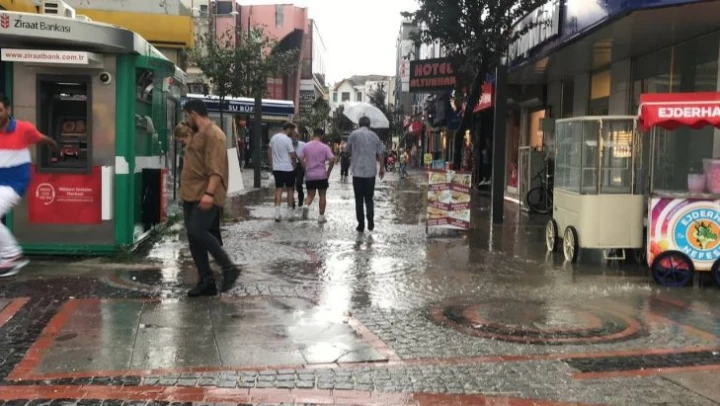 Edirne'de akşam saatlerinde aniden bastıran yağmura hazırlıksız yakalanan vatandaşlar zor anlar yaşadı. Su birikintilerinin oluştuğu yollarda sürücüler ilerlemekte güçlük çekti. Hava sıcaklığının 22 derece ölçüldüğü kentte, yağış etkisini kaybetti.