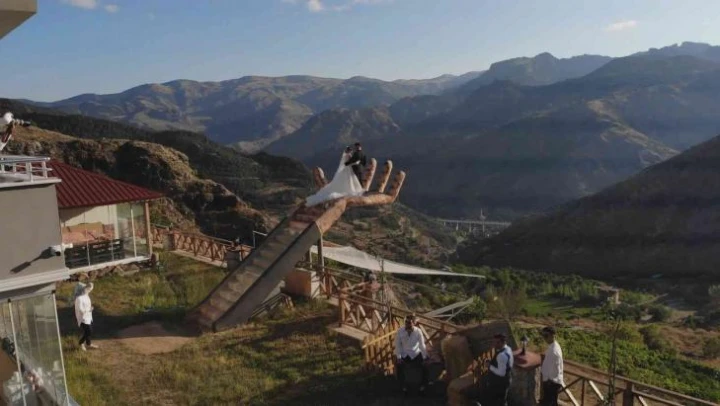 Gümüşhane'nin merkeze bağlı Yeşilyurt köyünde bulunan evlerini fotoğraf platosuna çeviren fotoğrafçı aile, bahçelerine kurdukları insan eline benzeyen platformda fotoğraf çekimi için kendilerini tercih eden çiftleri adeta el üstünde tutuyor. Platform Doğu Karadeniz'de tek olma özelliği taşıyor.
