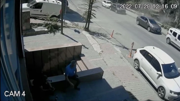 Kaza sonucu araç kullanılamaz hale gelirken, içerisindeki sürücü Ertürk ve Kahraman hafif şekilde yaralandı. Dehşet anları ise kameralara saniye saniye yansıdı. Görüntülerde, sürücüler caddede seyrettikten saniyeler sonra kamyonet süratle kayıyor. Otomobile çarpan kamyonet ardından yeşillik alana uçuyor. Vatandaşlar ise koşarak olay yerine gidiyor.