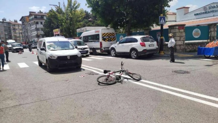 Sivas'ta hafif ticari aracın çarptığı bisikletli çocuk ağır yaralandı, çocuğa çarpan sürücü ise ifadesi alınmak üzere polis merkezine götürüldü.