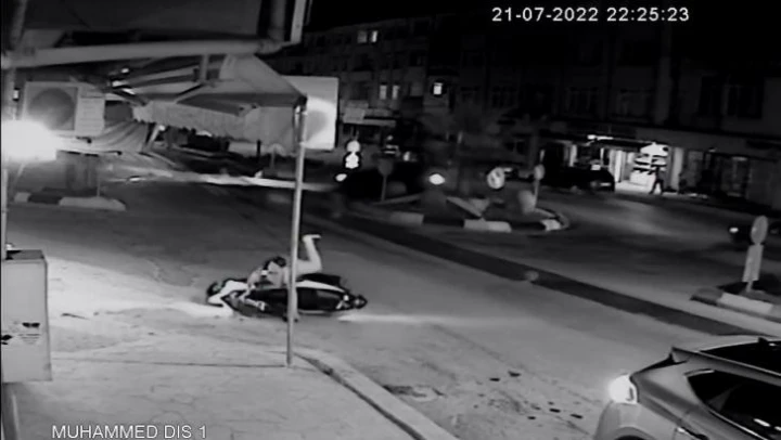 Sakarya'nın Akyazı ilçesinde ıslak yol, otomobilin kontrolden çıkarak refüje çarpmasına ve dönüş yapmak isteyen motosikletin devrilmesine sebep oldu. Meydana gelen kazalar güvenlik kamerası tarafından görüntülendi.