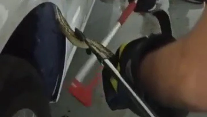 İtfaiye aracına giren yılanı yine itfaiyeciler çıkardı