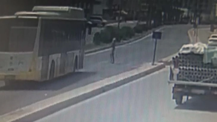 Öte yandan kaza, işyeri güvenlik kameralarına saniye saniye yansıdı. Görüntülerde karayolunun yaya geçidinden refüje doğru yürüyerek geçen Uslu'ya, yolun ortasında otobüsün çarpması yer alıyor.
