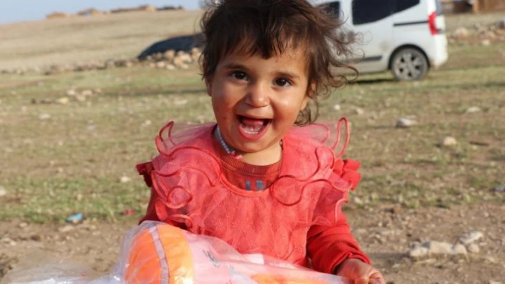 Kırsaldaki göçer çocukların oyuncak sevinci