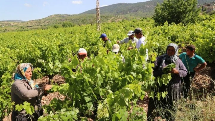 Konya'da üzüm yaprağı hasadı başladı