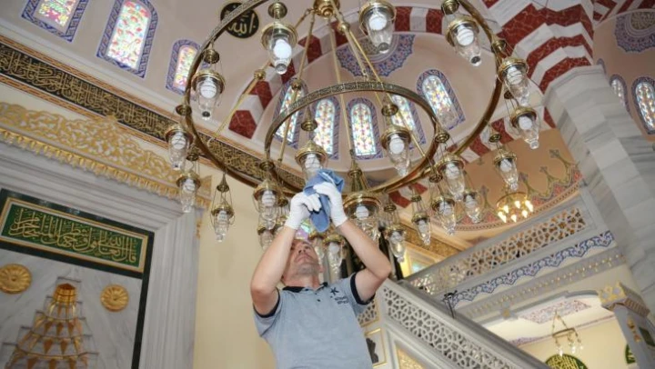 Küçükçekmece'deki ibadethanelerde bayram öncesi hijyen mesaisi