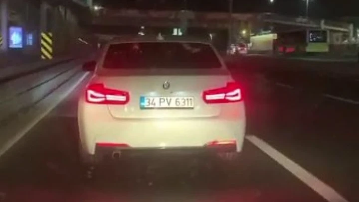 Küçükçekmece'de, D-100 karayolu üzerinde tehlikeli bir şekilde ilerleyen sürücü hem kendi canını hem de diğer sürücüleri tehlikeye attı.