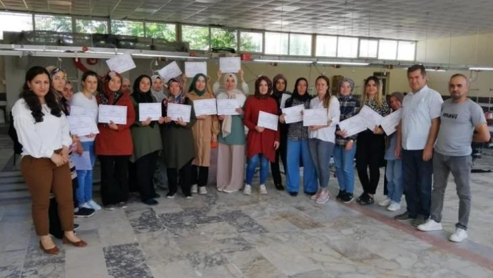 Kursu başarıyla tamamlayan hünerli kadınların diktiği elbiseler büyük beğeni topluyor