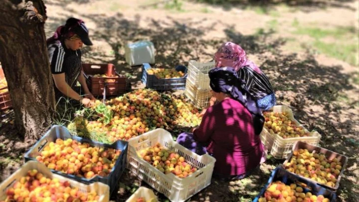 Ağaçtan düşen kayısıları özenle seçen çalışanlar, topladıkları ürünleri daha sonra sergene bırakarak güneşin önünde kurumaya bırakıyor. Yaş kayısı olarak da tezgahta alıcısını bulan kayısıların büyük bölümü ise ya gün kurusu olarak yada natürel olarak dış piyasaya sunulmak üzere pazara götürülüyor.