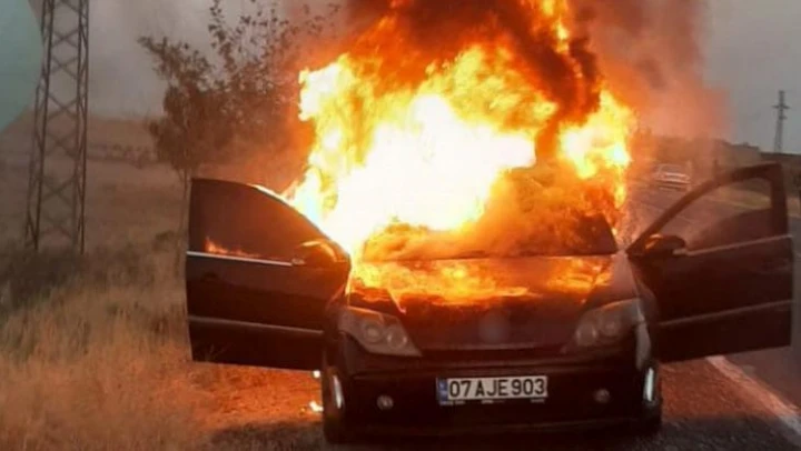 Mardin'de seyir halindeki otomobil, bir anda alev aldı. Kısa sürede alev topuna dönen ve sürücüsünün kendisini dışarı atarak kurtardığı araçta büyük çapta maddi hasar meydana geldi.
