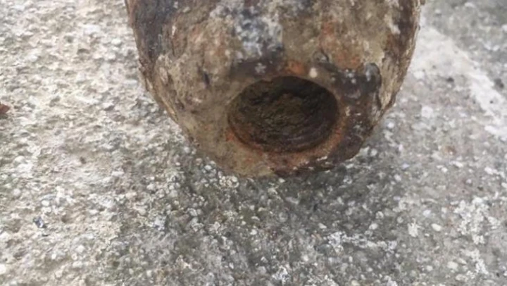 Manisa'nın Salihli ilçesine bağlı Yenipazar Mahallesi'nde mezar kazan vatandaş, Milli Mücadele döneminden kaldığı tahmin edilen patlamamış top mermisi buldu.