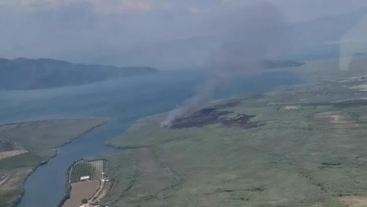 Muğla Dalyan Kanalı'nın Köyceğiz Gölü'ne çıkış noktasında bulunan sazlık alanda çıkan yangını havadan söndürme çalışmaları devam ediyor.
