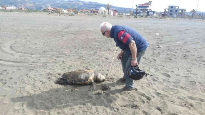 Ekipler, sahilde bulunan yeşil deniz kaplumbağaları için çalışma başlattı. Ölü kaplumbağaları sahilden kaldırdı.