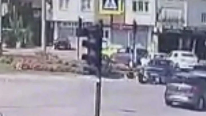 Kaza anı bir işyerinin güvenlik kameralarına saniye saniye yansırken, polis kazayla ilgili inceleme başlattı.