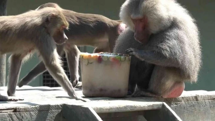 Bursa Büyükşehir Belediyesi Hayvanat Bahçesi'nde sıcaktan bunalan hayvanlar, buzlu meyvelerle serinledi.