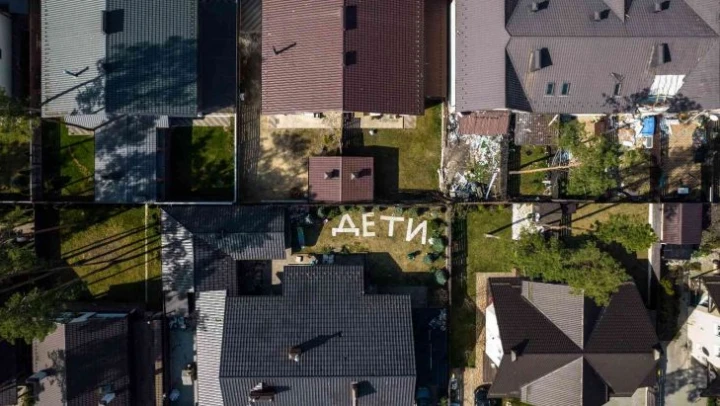 Ukrayna'nın Kiev bölgesinde yer alan ve Rusya'nın saldırılarından en çok etkilenen kentlerden biri olan Gostomel'de birçok ev kullanılamaz hale geldi. Savaşın ağır izlerini taşıyan kentte bir aile, Rusya'nın saldırılarına karşı evinin bahçesine mermer kullanarak 'çocuklar var' yazdı. Ailenin savaşa karşı çaresizliğini gösteren yazı dron ile görüntülendi. Büyük bir sitenin içerisinde yer alan evin çevresindeki birçok yapının hasar aldığı görülürken, yazının bulunduğu evde hasar bulunmaması dikkat çekti.