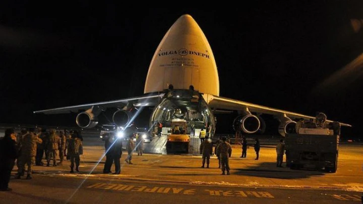 Tam donanımlı 10 zırhlı araç ve çok sayıda askeri teçhizattan oluşan yardım, Rusya'dan Antonov-124-100 tipi uzun menzilli kargo uçağıyla Kırgızistan'a geldi.