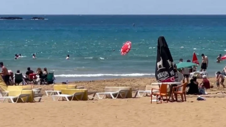Rüzgârla denize savrulan şemsiye, tatilcilere korku dolu anlar yaşattı