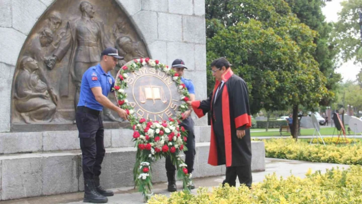 Adli yıl açılışı dolayısıyla Atatürk Anıtı'nda çelenk sunma töreni yapıldı. Törende ilk olarak Samsun Cumhuriyet Başsavcısı Mehmet Sabri Kılıç, başsavcılık adına anıta çelenk sundu. Daha sonrasında ise Bölge Adliye Mahkemesi Cumhuriyet Başsavcısı Fahri Gülay, Bölge İdare Mahkemesi Başkanı İshak Sağır, Samsun Baro Başkanı Pınar Gürsel Yıldıran ve Samsun Noterler Odası Başkanı Türkay Tezir'in anıta çelenk sunmasının arından saygı duruşunda bulunuldu ve İstiklal Marşı okundu.