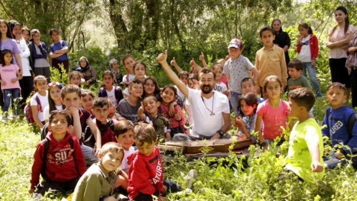 Yüksekova'da gezgin öğretmen olarak tanınan ve yaptığı birçok keşifle ve çektiği doğa görüntüleriyle ilçedeki insanların gönlünde güzel yer edinen öğretmen Ümit Bartın, köylerdeki çocuklara İran ve Hindistan'a has santurla mini konserler veriyor. İlçenin tüm köylerini karış karış gezen Bartın, köy çocuklarına santur çalarak güzel anlar yaşatıyor. Çocukları mutlu etmek için köy köy gezdiğini belirten Bartın, 'Yıllardır bu bölgenin farklı farklı yerlerinde doğa gezileri yapıyorum. Çoğu zaman doğanın çok değişik anlarına şahit oluyorum ve insanımızın güzel renkli halleriyle karşılaşıyoruz. Köyleri gezerken özellikle karşılaştığım çocukların cıvıl cıvıl hallerini görmek beni mutlu ediyor. Ben de sürekli aynı aktiviteyi tekrarlarken, yani köyleri gezerken, bu sefer aklıma çaldığım genelde İran ve Hindistan müzik dünyasına ait enstrüman olan santur geldi. Köylerdeki çocuklarla doğanın en güzel yerlerinde toplanıp santur çalabilirim ve onlarla mutlu bir şekilde küçük konserler verebilirim diye düşündüm. Bugün bu durumu gerçekleştirdik ve düşündüğümden daha güzel oldu her şey. Çocuklarla topladığımız yere, aileler de eşlik ederek santur sesini dinlemeye geldiler. Bu beni daha da mutlu etti' dedi.