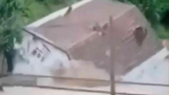 Kastamonu'da etkili olan selde bir ev ve caminin yıkılma anı cep telefonu kameralarına yansıdı.