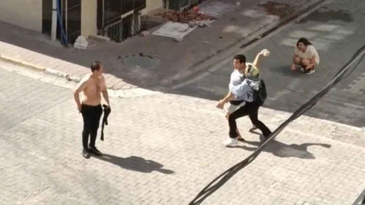 Olay, geçtiğiniz Pazartesi günü Esenyurt Mehterçeşme mahallesinde gerçekleşti. İddiaya göre ailesiyle yaşayan İran uyruklu bir kız, erkek arkadaşıyla ayrı eve çıkmak istedi. Ailesinin izin vermemesi sebebiyle sevgilisi, kızın evine gelerek ' Kız arkadaşımı burada zorla tutuyorsunuz' dedi. Bu sözler üzerine aile ve erkek arkadaş arasında çıkan tartışma sokağa taşarken ortalık savaş alanına döndü. Kaldırım taşı ve bıçakların da kullanıldığı kavgada sinir krizi geçiren genç kız ise bileklerini kesmeye çalıştı. Yaşanan kavga çevredeki vatandaşların müdahalesi ile son bulurken o anlar cep telefonu kamerasına saniye saniye yansıdı.
