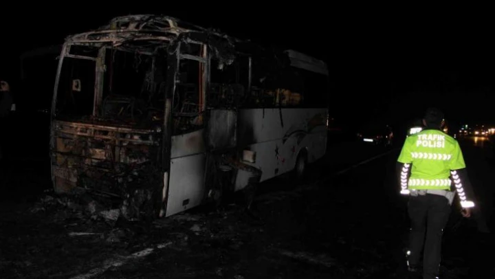 Seyir halindeyken yanan midibüs kullanılamaz hale geldi