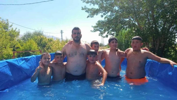 Sondaj kuyusundan çektikleri su ile römorku doldurduklarını hatırlatan Ceran, 'Havanın çok sıcak olması nedeniyle böylesi bir çözüm yolu bulduk. Şuan bu yolla hem büyükler hem de küçükler serinliyor. Kendi havuzumuzu ancak bu şekilde yapabildik. Şimdi burası bana ve çocuklarıma deniz gibi geliyor' diye konuştu.
